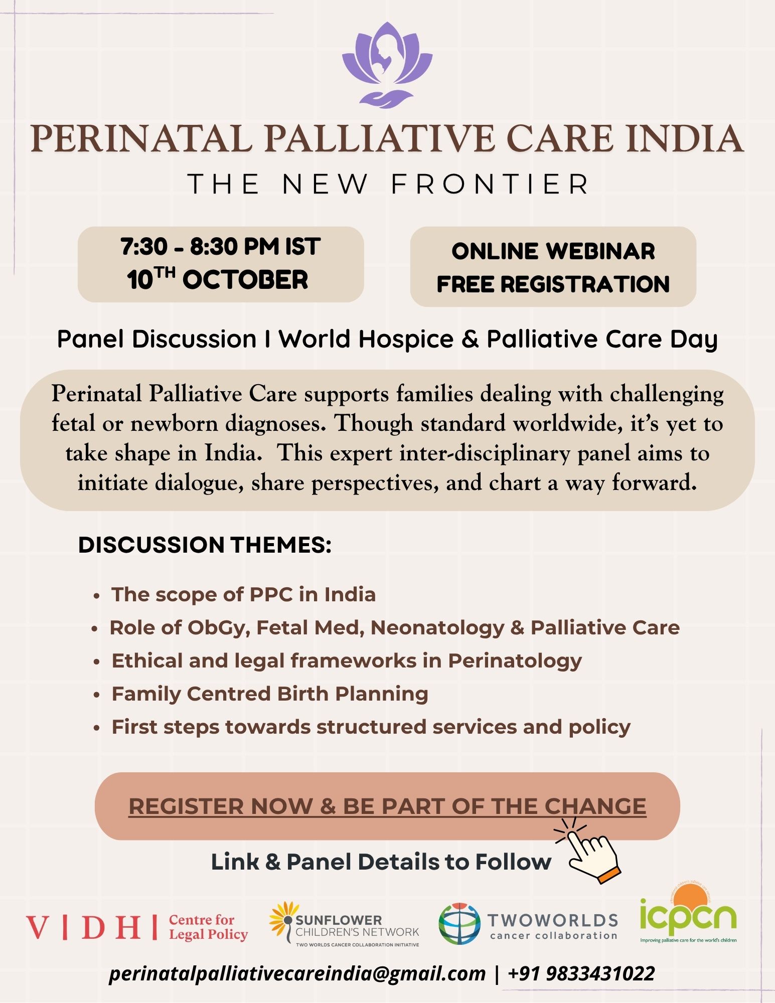 To mark WHPCD and Baby Loss Awareness Week, TwoWorldsCancer & ICPCN hosted a landmark webinar bringing together experts from obstetrics, foetal medicine, neonatology, paediatric palliative care, and Indian law. With over 250 registrations, the event highlighted the urgent need for interdisciplinary dialogue and awareness around perinatal palliative care.