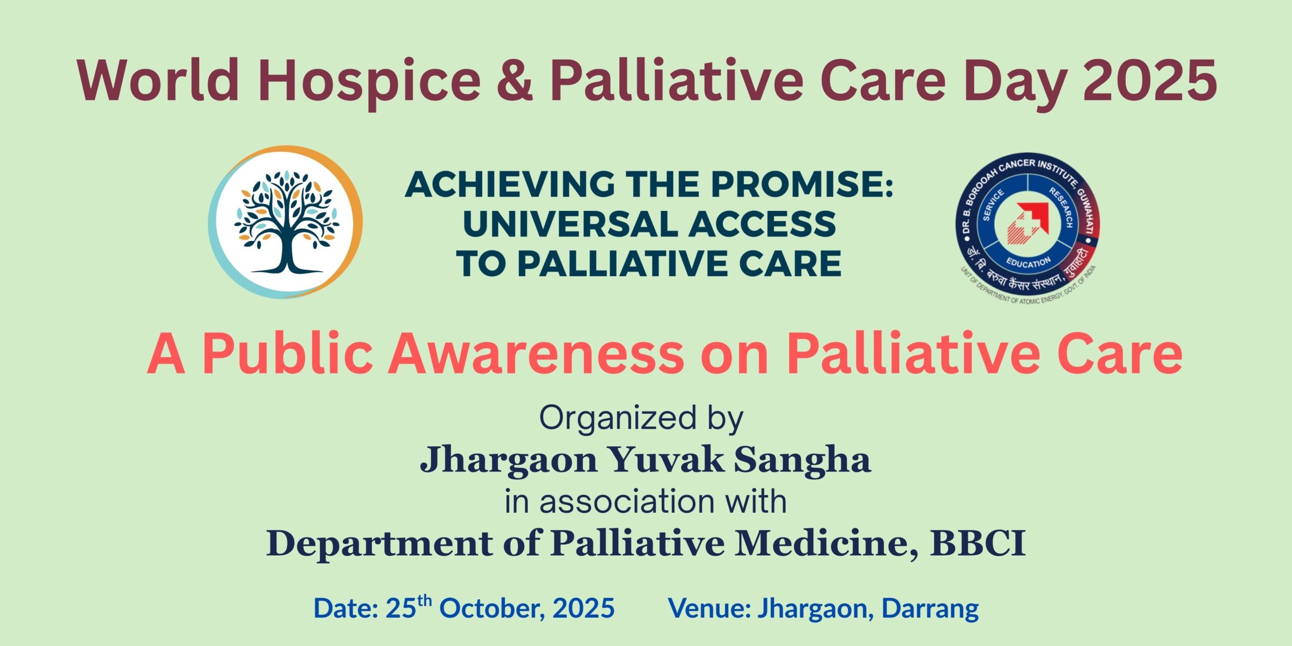 The Department of Palliative Medicine, BBCI will celebrate “World Hospice & Palliative Care Day 2025” with a Public Awareness Program on Palliative care in a village that is approximately 65 kms away from the Institute. “Jhargaon Yuvak Sangha”, a youth club from the locality has kindly consented to host the program. The main objective of this program is to appraise the villagers about Palliative care and their role as a volunteer to care for the patients.
