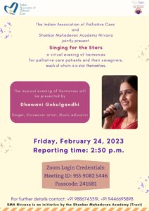 The IAPC and the SMA’s program for the month was a regional special edition dedicated to all our friends from South India. This special edition of ‘Singing for the Stars’ was presented jointly by Mr Anirudh Iyer (Vocalist, Performing Artist, Musician and Educator) and Ms Archana Kamath Hegdekar (Singer, Music Composer, Performing Artist ) via Zoom on Tuesday, 24th January, 2023, at 2:50 p.m. Both artists kept the audience grooving with popular songs from Telugu, Kannada, Tamil, Malayalam and Hindi. Thank you, Mr Iyer and Ms Hegdekar, for presenting us with such a fun filled evening of harmony.