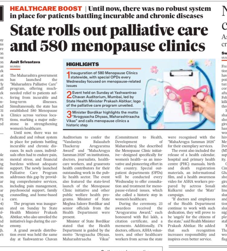 The Government of Maharashtra has formally rolled out the National Program for Palliative Care across the state, marking a significant step toward strengthening care for individuals living with chronic, life limiting, and incurable illnesses. The initiative was launched by Shri. Prakash Abitkar, State Health Minister of Maharashtra.