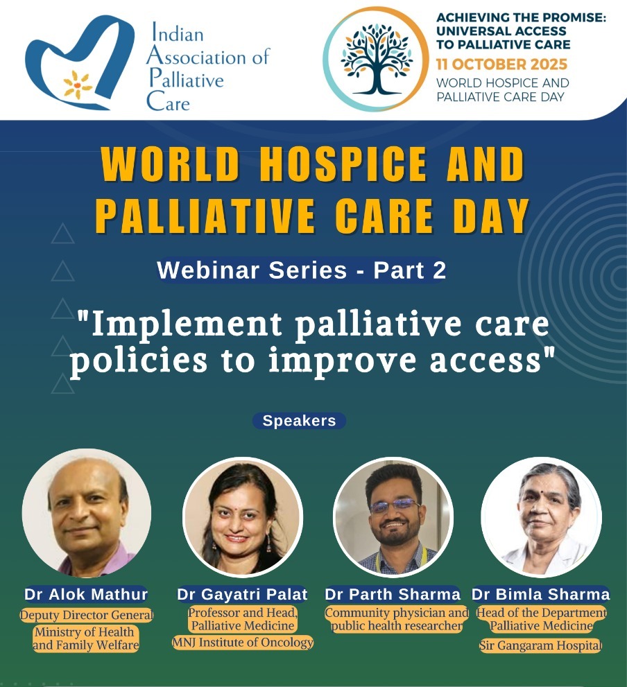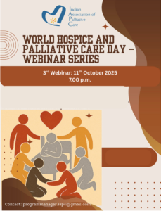The Indian Association of Palliative Care warmly invites you to join the third and final webinar in its WHPCD series on World Hospice and Palliative Care Day (WHPCD), 11th October 2025, from 7:00 to 8:30 p.m.