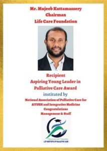 Mr Mujeeb Kuttamassery, Chairman, Life Care Foundation, and a Central Council Member (South Zone), IAPC, has been named as the recipient of the ‘Aspiring Young Leader in Palliative Care’ award, by the National Association of Palliative Care for AYUSH & Integrative Medicine (NAPCIAM).