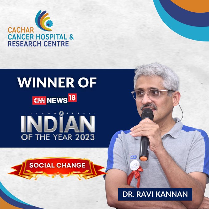 It is with enthusiasm that Dr Ravi Kannan (Director, Cachar Cancer Hospital and Research Center (CCHRC), Assam) has been bestowed with the CNN-NEWS 18’s ‘Indian of the Year Award (Social Change) 2023’ earlier this month.