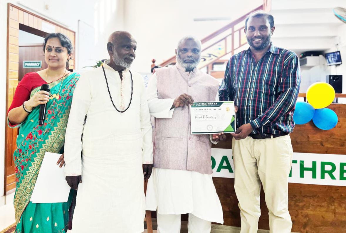 A humbled Mr Kuttamassery thanked Team Dathathreya Integrated Holistic Centre and Team Suraksha Palliative Care Center for this recognition and shared that this acknowledgment only motivates him further to do his best towards serving the needy and suffering patients in the region.