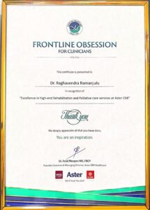 We are delighted to share that Dr Raghavendra Ramanjulu (Lead Consultant, Palliative Medicine and Rehabilitation, Aster CMI Hospital, Bengaluru) has received the ‘Frontline obsession for Clinicians’ Award at a ceremony held at Aster CMI, Hebbal, Bengaluru on Thursday, 27th April, 2023.