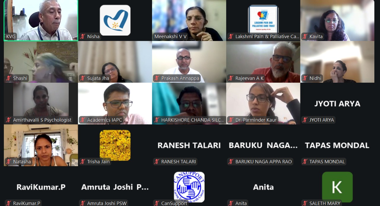 The first day started with the welcome address by Dr Geeta Joshi, President IAPC, followed by the sessions on how to be a great teacher and how to use digital tools in conducting IAPC’s online training programs. Col Yashwant Joshi spoke with the participants about what makes a good teacher, focusing on communication skills, getting students involved in classroom teaching, and teaching that stimulates thinking. In the session of online teaching methodology, the participants learnt how to use digital tools, hold synchronous classes, and follow best practices to keep students engaged and focused during virtual sessions. The afternoon sessions on pain management in palliative care which is a very integral part of nursing care. Participants discussed real-life cases to review pain pathophysiology, how to differentiate nociceptive and neuropathic pain, using standardised tools for assessment and specifically about the important learning outcomes on opioid use. The discussion also focused on clinical decisions when using the WHO analgesic ladder, opioid titration, and identifying side effects. The sessions encouraged people to talk about their own teaching experiences and how to use these ideas to teach and mentor students at the bedside.