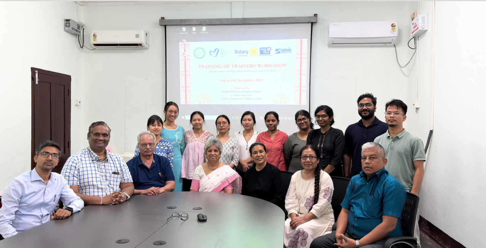 The Baptist Christian Hospital, in collaboration with the Indian Association of Palliative Care (IAPC), successfully hosted a three-day “Training of Trainers” workshop from 6th to 8th November 2025, with support from Rotary Greater Tezpur and Sergio Remedies Pvt. Ltd. The program was facilitated by an expert faculty panel comprising Dr. Geeta Joshi (President, IAPC), Dr. Yashavant Joshi (Chairman, UNNAT, Vadodara, Gujarat), Dr. Hiranya Das (Regional Representative, IAPC, Deputy Director, Division of Epidemiology & Nutrition ICMR-RMRC), Dr. Dinesh Goswami (Secretary cum CEO Guwahati Pain and Palliative Care Society), and Dr. Obangjungla (Regional Representative, IAPC, Former Joint Director, Health and Family Welfare Nagaland), who guided 20 participants through a structured curriculum. The training progressed logically over three days: commencing with foundational topics like pain management, communication, and spirituality; moving to psychosocial dimensions such as home care, community mobilization, and caregiver roles; and concluding with sensitive subjects including grief, bereavement, and social rehabilitation.