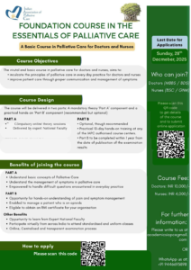 Last Date for application submission: The last date to submit applications for January 2026 batch of Foundation Course in Essentials of Palliative Care: Sunday, 28th December, 2025.