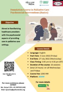 Hurry and register before 2nd June, 2022, for the ‘Foundation Course in Palliative Care Psychosocial Interventions (Basics)’ offered jointly by TIPS and ECHO International