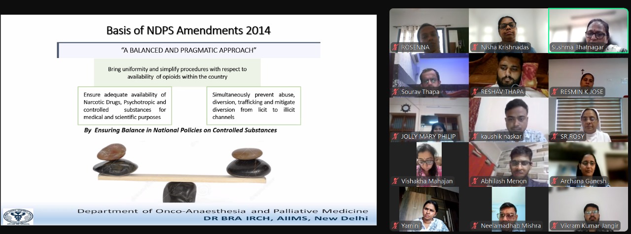 Post participation in the ‘Part A’ component of the course, participants will be empowered with adequate knowledge of commonly used drugs in Palliative Care for pain management and other symptoms. They were equipped with relevant knowledge regarding Essential Narcotic Drugs and Narcotic Drugs along with insights into the technical legalities and the documentation involved in procuring, storing, dispensing and documenting the same.