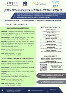 Registrations are invited for the ‘Education in Palliative and End of Life Care-Pediatrics-India (EPEC-Pediatrics-India)’ program organised jointly by Bangalore Hospice Trust – Karunashraya, the Asia Pacific Hospice and Palliative Care Network (APHN), and EPEC Pediatrics.