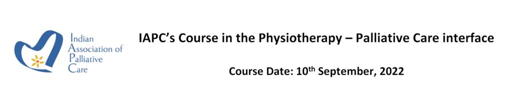 The IAPC invites you to apply for the next online batch of the IAPC’s ‘Course in the Physiotherapy – Palliative Care Interface’ scheduled for Saturday, 10th September, 2022, between 2:00 p.m. and 5:45 p.m.