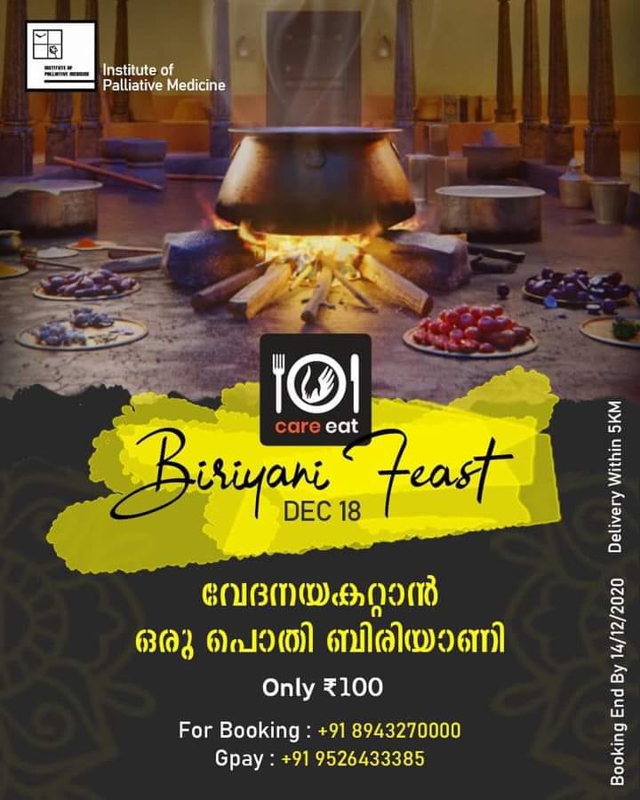 1. Student volunteers always play a key role in providing support to the community palliative care services in Kerala. Finding resources to run the services is a huge challenge during COVID-19 pandemic. Here they again stepped in- with a unique idea- to raise fund for Pain and Palliative Care Society, Kozhikode. It’s “Biriyani Fest”- they cooked, and delivered, yummy Chicken Biriyanis to the doorsteps of those who ordered for it.