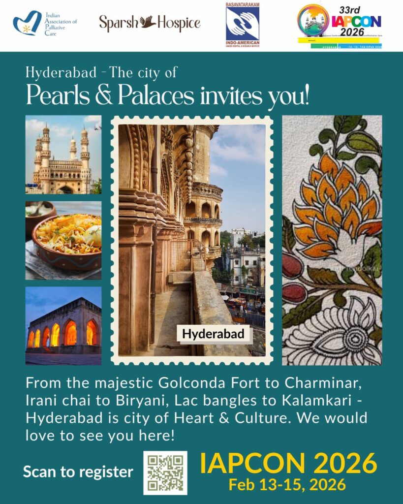 IAPCON 2026, to be held in Hyderabad, is more than the 33rd Annual International Conference of the Indian Association of Palliative Care. Organised by Sparsh Hospice, Hyderabad and Basavatarakam Indo American Cancer Hospital and Research Institute, the IAPCON 2026 is a conscious attempt to reimagine how we meet, learn, reflect, and connect as a community committed to care, dignity, and compassion. This year, several unique initiatives have been thoughtfully woven into the conference design; each rooted in listening to what our community values most.