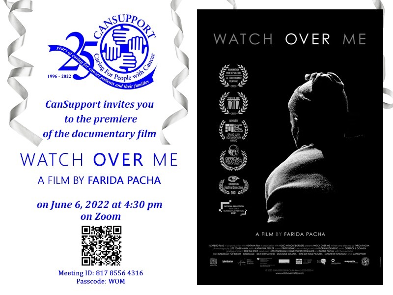 CanSupport, New Delhi, invites you to the virtual premiere of ‘Watch Over Me’, their award winning documentary film, on Monday,  6th June, 2022 at 4:30 p.m.