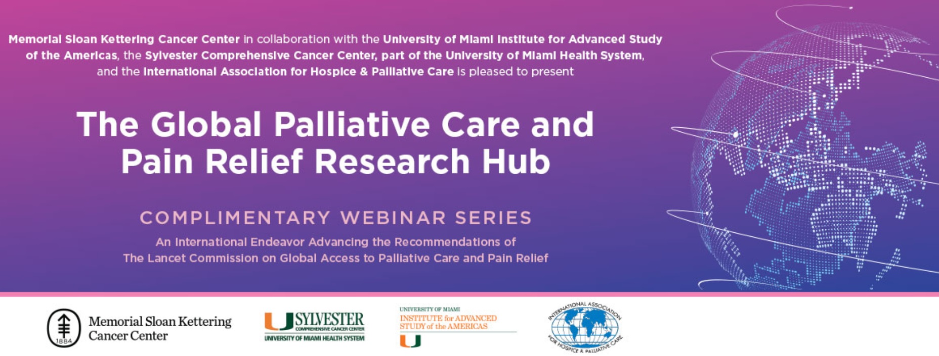 The Global Palliative Care and Pain Relief Research Hub, is spearheaded by the eminent Dr. Felicia Knaul and consists of multidisciplinary clinicians, scientists, scholars, and advocates from Memorial Sloan Kettering (MSK) Cancer Center’s Department of Psychiatry & Behavioral Sciences and Supportive Care Service; the Sylvester Comprehensive Cancer Center, part of the University of Miami Health System; the University of Miami Institute for Advanced Study of the Americas; and the International Association for Hospice & Palliative Care.