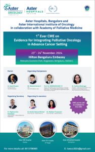 Registrations are invited for the CME on ‘Evidence for Integrating Palliative Oncology in Advance Cancer Setting’ organized by the Aster Hospitals, Bengaluru, and Aster International Institute of Oncology, in collaboration with the Academy of Palliative Medicine.
