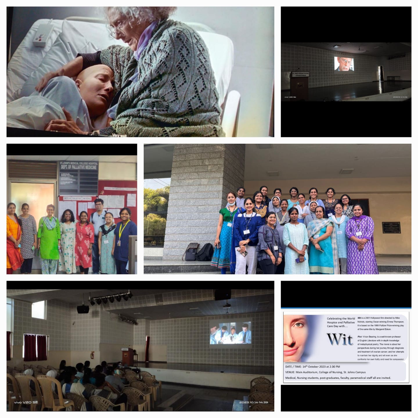 The Department of Palliative Medicine celebrated the “World Hospice and Palliative Care Day 2023” on the 14th October 2023 at the Main Auditorium, College of Nursing, St. John’s campus, Bengaluru. For celebrating WHPCD by showing a Hollywood film named WIT which is directed by Mike Nichols, starring Oscar-winning Emma Thompson.