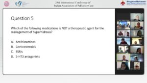 The speakers highlighted the role and importance of pharmacology of different drugs and their role in treating patients who needed symptomatic relief. Dr Nikki Pease (Palliative Care Consultant, Cardiff University, UK) in her presentation on ‘Cancer Associated Thrombosis – Update on Direct Oral Anticoagulants (DOACs)’ enlightened the delegates on the importance of oral anticoagulant in advanced cancer patients. While Dr Arun Ghoshal’s (Clinical Fellow, University of Toronto, Canada) presentation on ‘Urinary Anti-Muscarinics’ clarified how and when to use medications to prevent hyperactive bladder. The session concluded with Dr Megan Doherty’s (Consultant, Paediatric Palliative Care, Two Worlds Cancer Collaboration, Canada) session on ‘Analgesics for Neuropathic Pain in Children’, discussed how to diagnose and assess neuropathic pain in children and the evidence-based treatment for neuropathic pain in children.