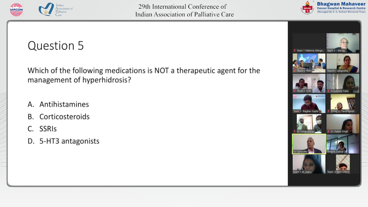 Drs Pallavi Singh and Shrenik Ostwal (both Consultants, Pain and Palliative Medicine, SRJ CBCC Cancer Hospital, Indore) and Dr Kahkasha (Associate Professor, AIIMS Deoghar) were the able quiz architects who concocted a perfect blend of questions covering both from the theory and the practice perspectives.