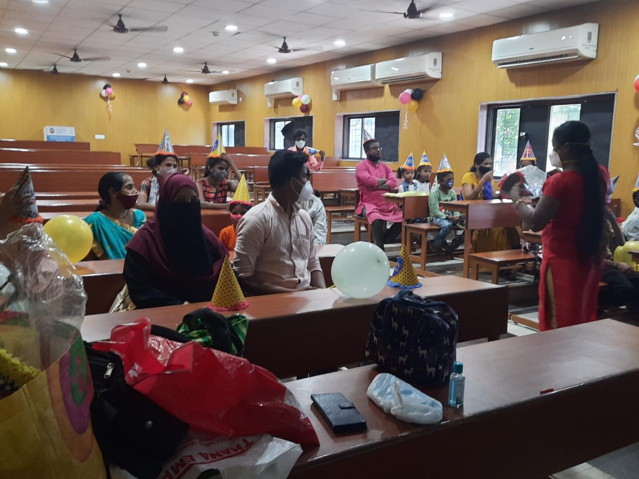 - Celebrations at CSMH, Kalwa, was organized in a hybrid manner with children staying in near proximity to the center joining the celebrations physically while the rest of the children joining in virtually. Children and their siblings were encouraged to make hats at their homes, prior to the celebrations, and send in photos and videos from this activity along with other videos of them singing, dancing etc. We were overwhelmed to note that despite their sufferings, the enthusiastic children sent in their videos sufficiently in advance, which allowed us to broadcast them during the program.